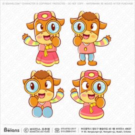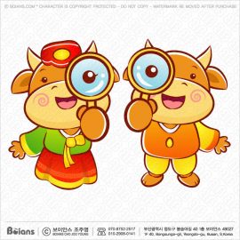 Boians Vector Bull and Cow Character examine a with a magnifying glass. Illustration of Isolated Beef. SKU: BVCD004301