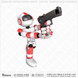 Boians 3D Red Robot character fire an aimed shot a automatic pistol. SKU: B3DC000791