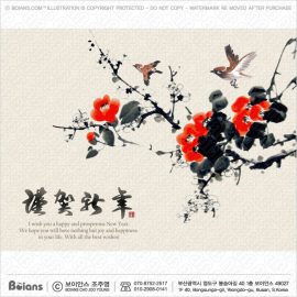 Boians Vector Plum trees and Sparrow New Year greeting card. SKU: BOIS000379