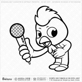 Boians Vector Black And White Funny Rooster Mascot holding a microphone. SKU: BVCD000096