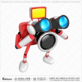 보이안스 3D 레드 카메라 캐릭터 향해서 망원경을 보다.