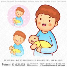 Boians Vector Dad character baby Embrace. Illustration of Isolated infant care. SKU: BVCD002901