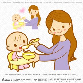 Boians Vector Mother character feeds baby food. Illustration of Isolated baby child care. SKU: BVCD002902
