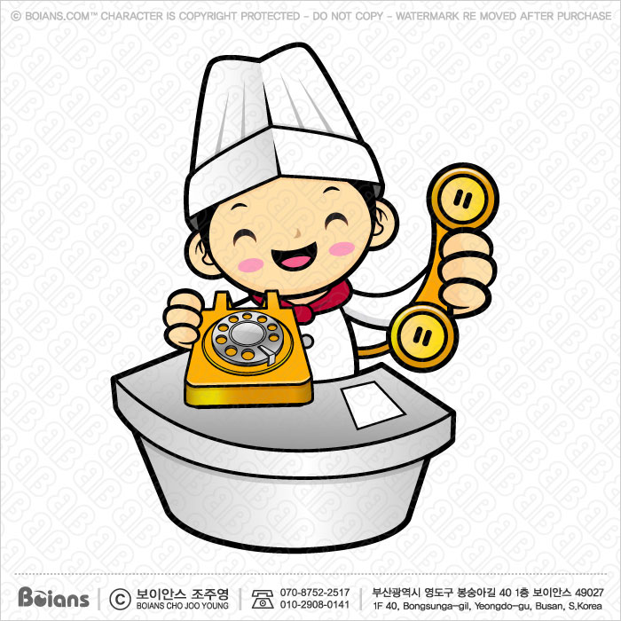 » » » » 보이안스 벡터 유쾌한 요리사 캐릭터 안내데스크에서 전화 통화를 하고있다. SKU: KOREA002256