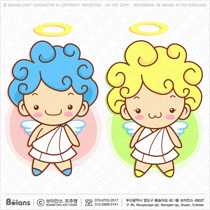 보이안스 벡터 커플 엔젤 캐릭터. 수호천사 일러스트. SKU: KOREA004732