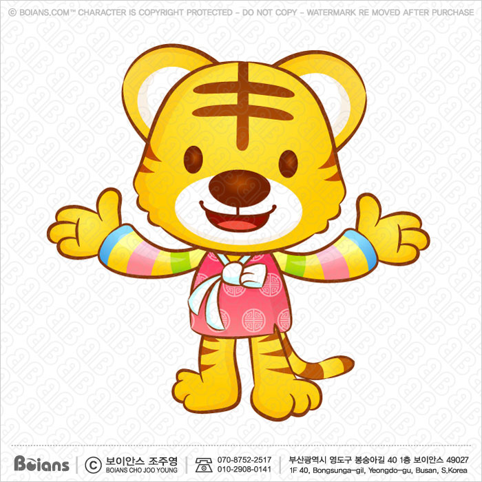 » » » » 보이안스 벡터 한국 호랑이 캐릭터는 양손으로 환영. 범띠 캐릭터 일러스트. SKU: KOREA004464