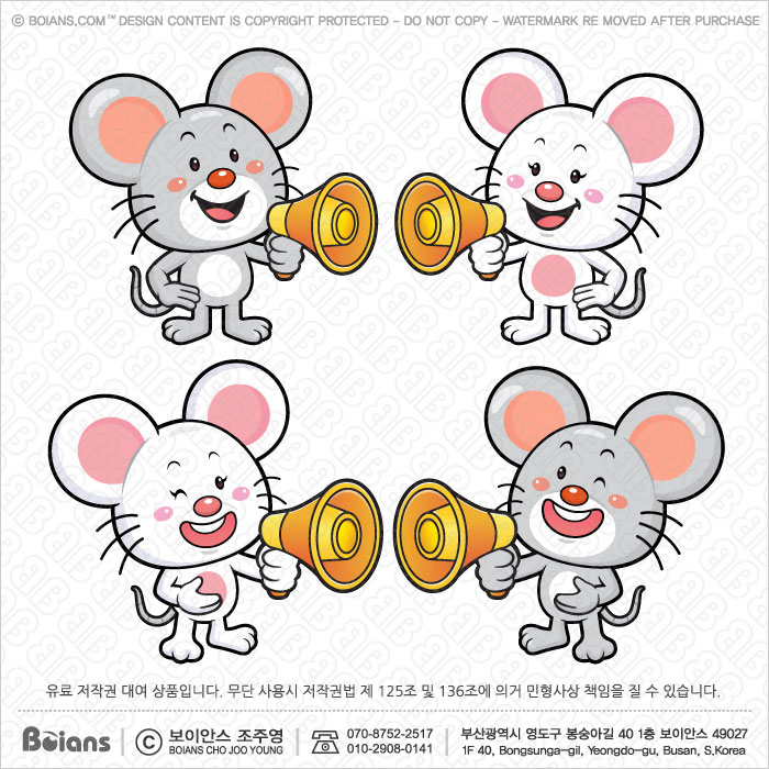 보이안스 벡터 2020년 귀여운 생쥐 캐릭터는 확성기를 들다. 새해 쥐띠 일러스트. SKU: KOREA005556