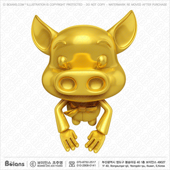 » » » » 보이안스 2019년 3D 한국 황금 돼지띠 캐릭터는 절을 하다. 기해년 돼지 일러스트. SKU: KOREA005305