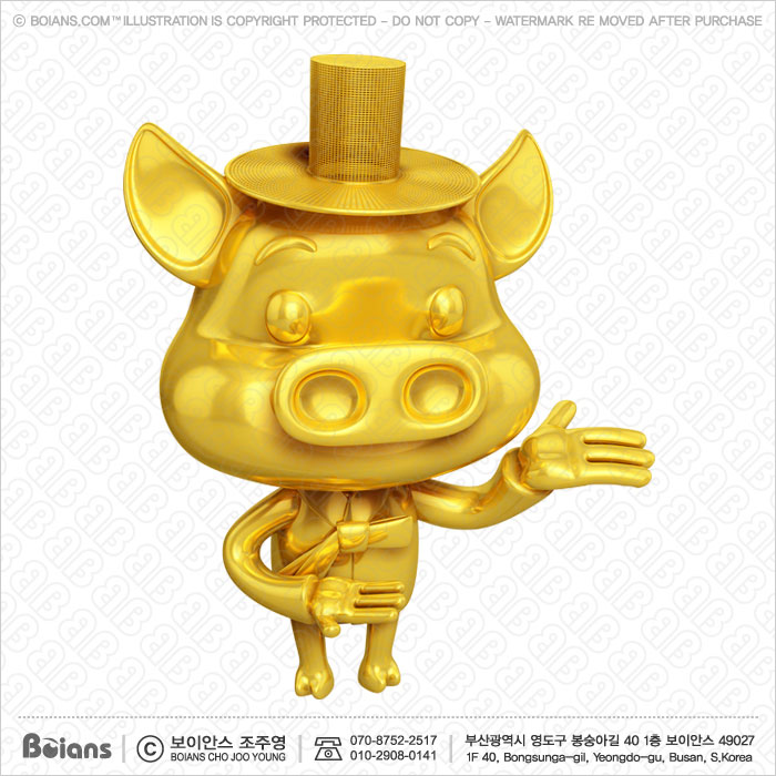 » » » » Boians 3D Classical Scholar Golden pig mascot gives direction. Illustration of Isolated Pig. SKU: B3DC003748