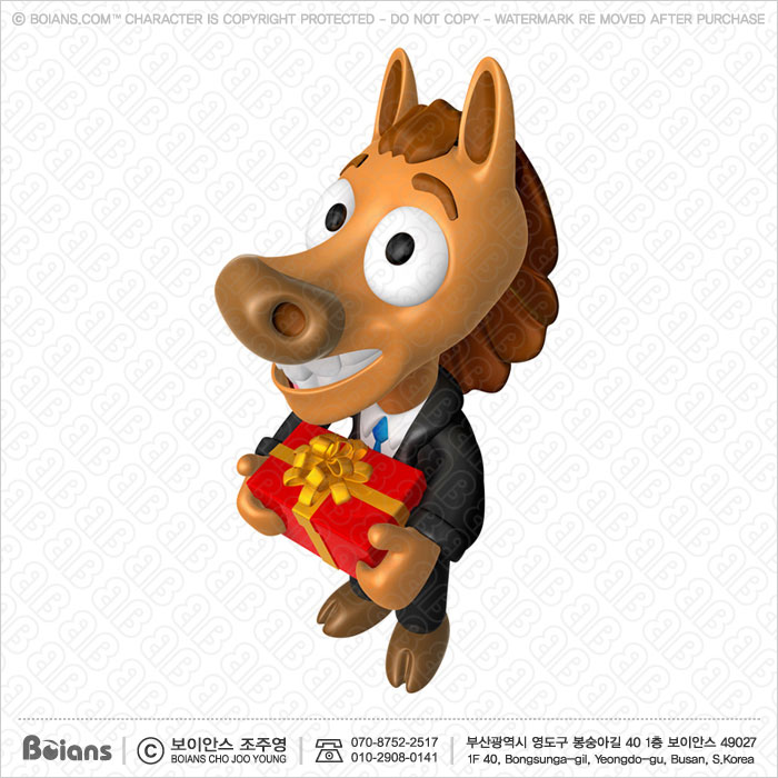 보이안스 3D 말 캐릭터 큰 선물상자를 들다.