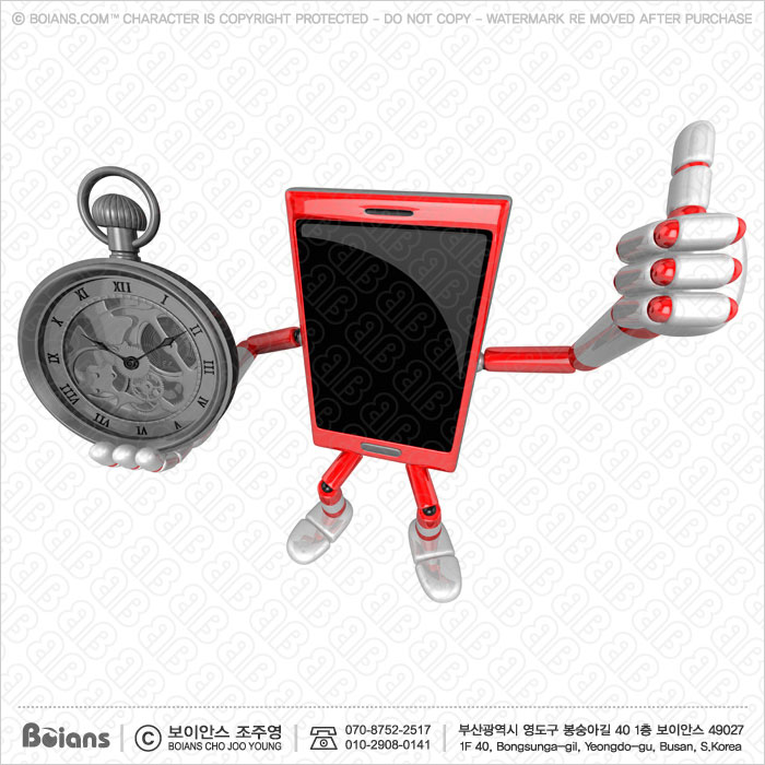 보이안스 3D 모바일 캐릭터 최고라는 제스처와 회중시계를 들다.