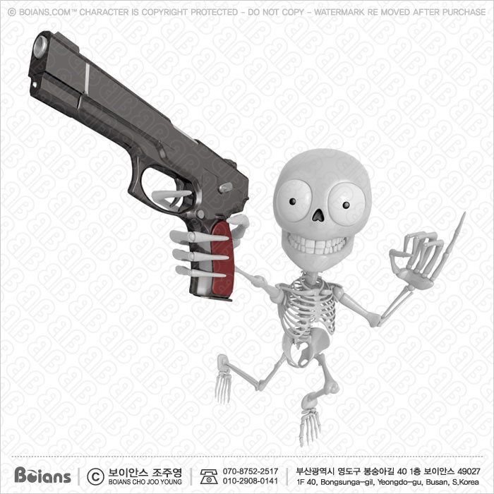 보이안스 3D 사람뼈 캐릭터 총격전 포즈 취하다.