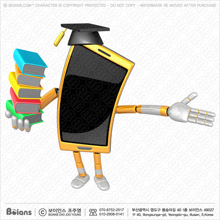 보이안스 3D 스마트폰 캐릭터 책더미를 들다.
