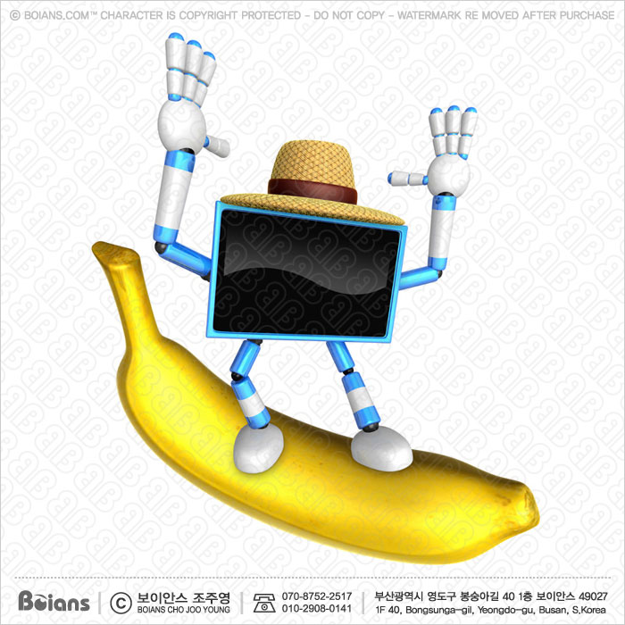 » » » » Boians 3D Television character standing on a big banana. SKU: B3DC001348