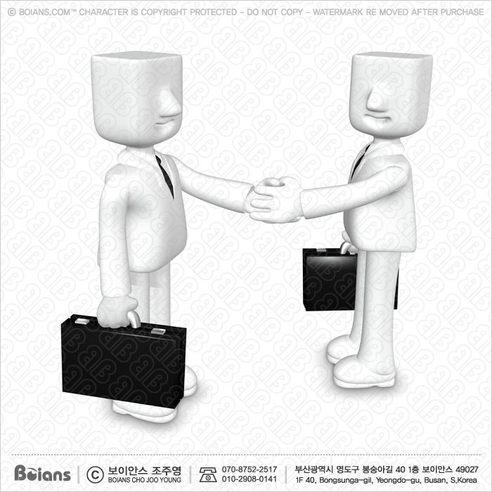 Boians 3D White Human Mascot handshake. SKU: B3DC002746