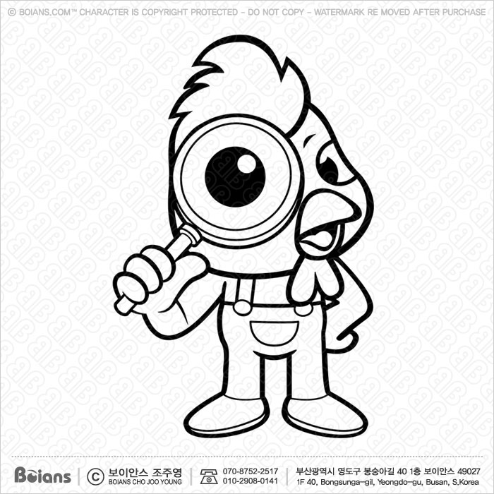 » » » » » Boians Vector Black And White Cartoon Chicken Mascot look through a magnifying glass. SKU: BVCD000038