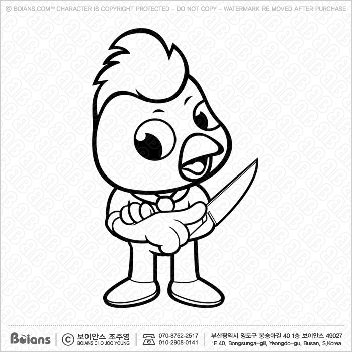 Boians Vector Black And White Chicken Mascot holding a knife. SKU: BVCD000162