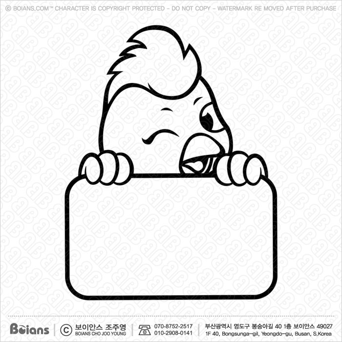 Boians Vector Black And White Cock Mascot is holding a board of both hands. SKU: BVCD000124