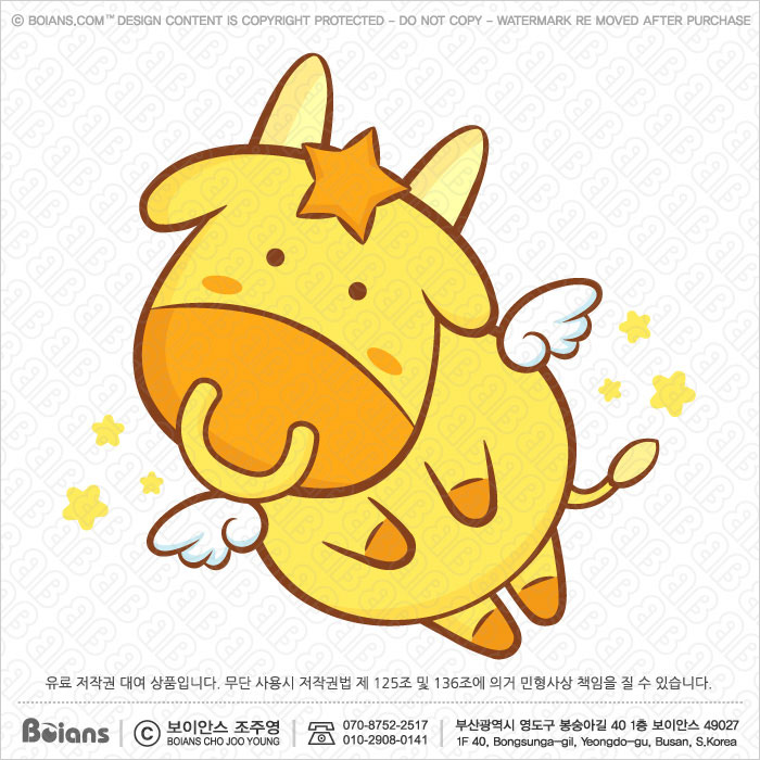 Boians Vector Bull character is flying in the sky. Signs of Zodiac Isolated Taurus Illustration. SKU: BVCD004924