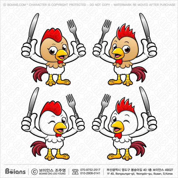 Boians Vector Chicken Character hand is holding a Fork and Knife. SKU: BVCD000298