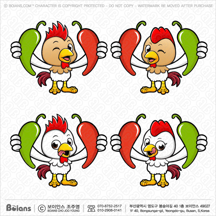 Boians Vector Chicken Character holding a chilli with both hands. SKU: BVCD000317