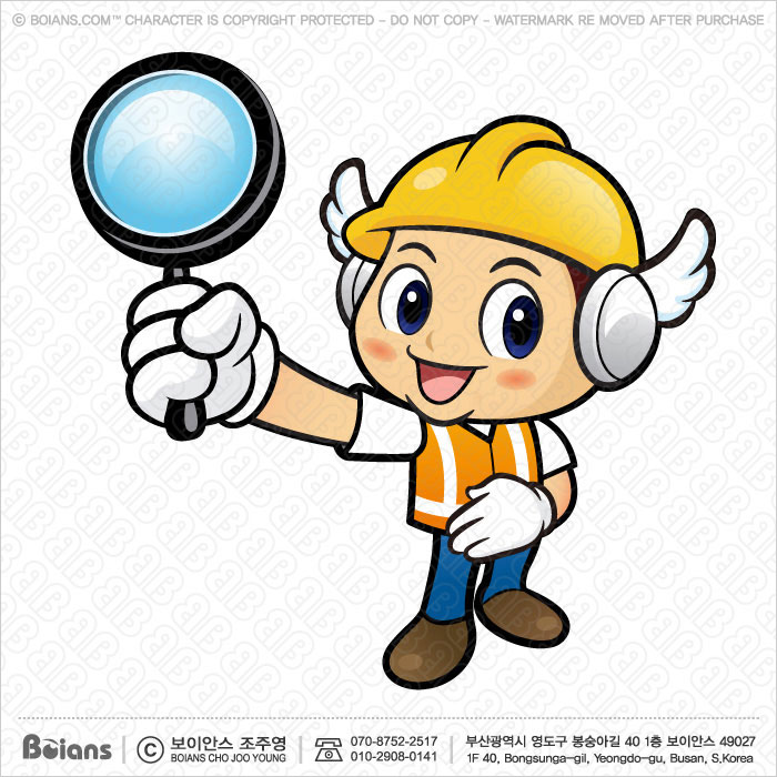 Boians Vector Construction worker Character is view through a magnifying glass. SKU: BVCD001857