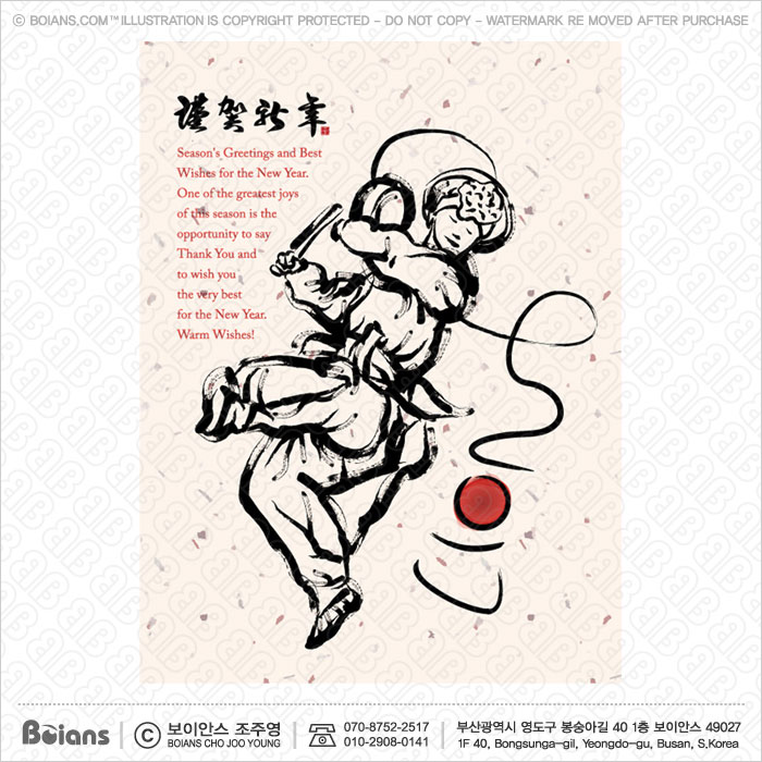 Boians Vector Korea Traditional Samulnori Dance New Year Greeting Card. SKU: BOIS000582