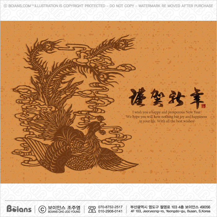 Boians Vector Korean Phoenix New Year Greeting Card. SKU: BOIS000530