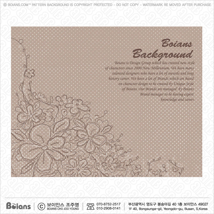 보이안스 벡터 라인아트 꽃과 도트 무늬 배경.