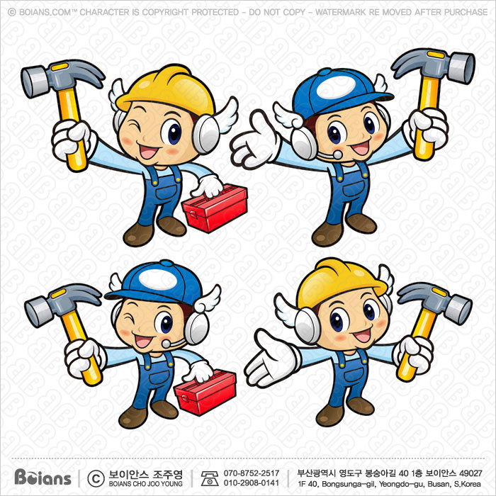Boians Vector Repairman Character holding a with both hammer and toolbox. SKU: BVCD001941