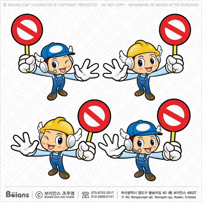 Boians Vector Service Engineer Character holding a picket warning gesture. SKU: BVCD002010