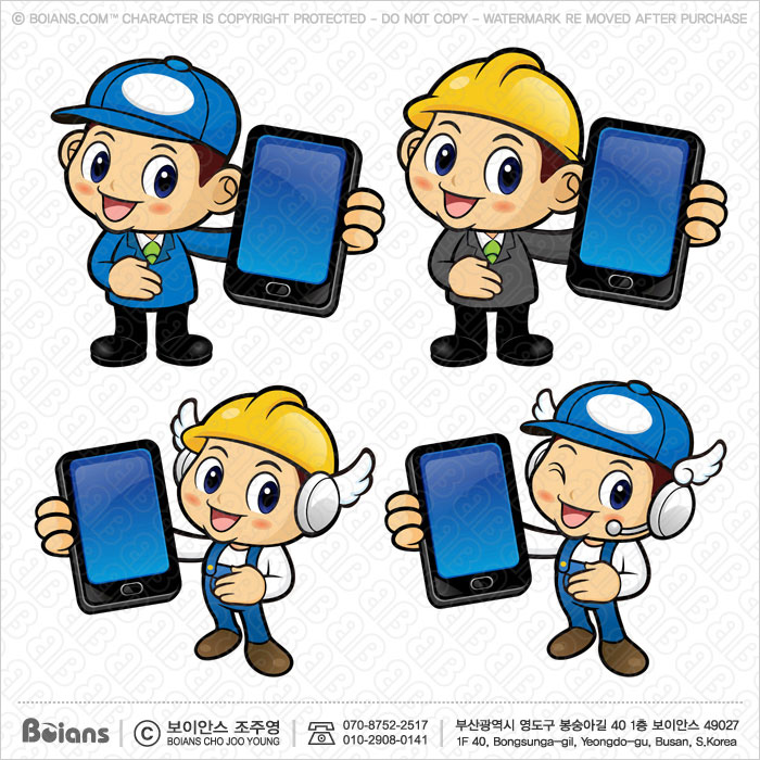 Boians Vector Service Engineer Character is holding a smart phone. SKU: BVCD002002
