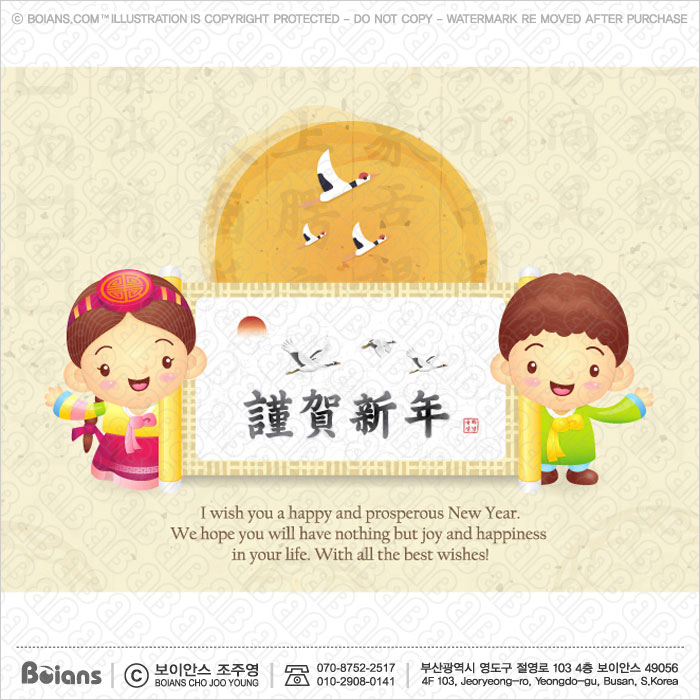 Boians Vector Traditional Culture Korean New Year Greeting Cards. SKU: BOIS000588