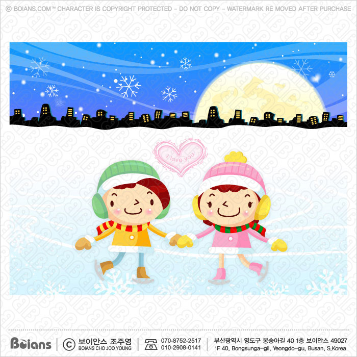 Boians Vector Winter Couple skating illustration. SKU: BVCD003322